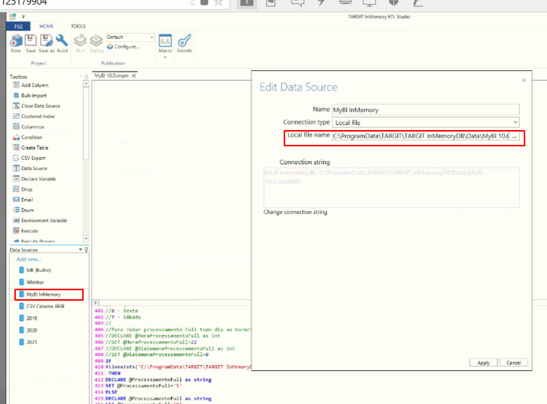 Erro ao dar 'Run' no ETL "Error Conecting to datasource MyBI InMemory;"