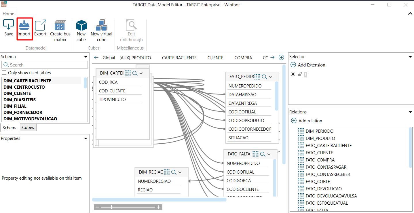 Caso seja necessário restaurar o Datamodel para o backup, podemos abrir o Datamodel que precisamos restaurar, e clicar em Import: