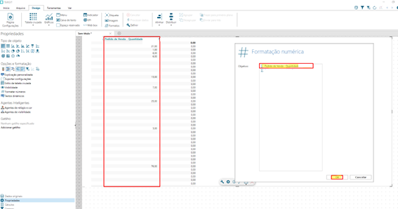 numérica Selecione "Numérico" e clique em "Formatação