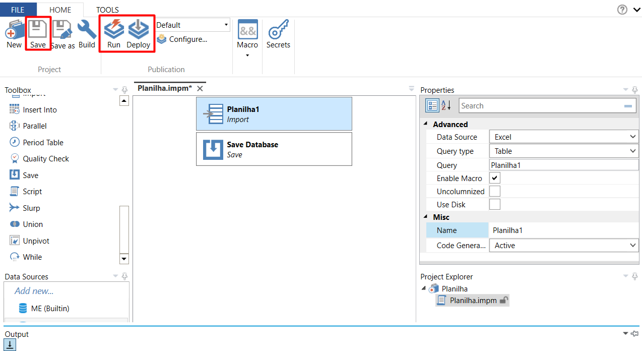 Obs: Não se esqueça de adicionar ao seu projeto a opção "Save Database" caso não tenha inserido ainda (se encontra na mesma aba que o Import).